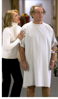 I don't think anybody who has ever watched the movie "Something's Gotta Give" will forget the sight of Jack Nicholson - or his "Dancing Harry" doubles - wearing hospital gowns. The sight is supposedly so offensive that you will not find a still online of Mr.Nicholson't back side but you can find the trailer on Youtube..